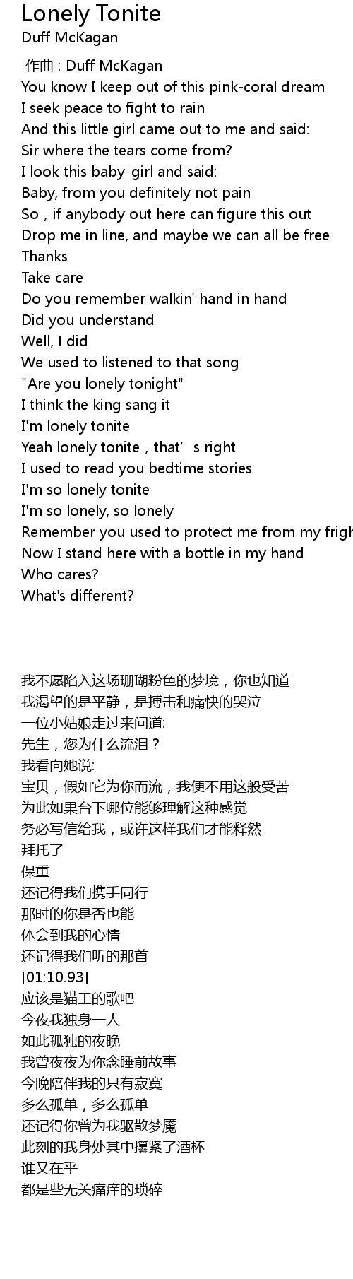| [01:30.00] | Yeah lonely tonite, that' s right |