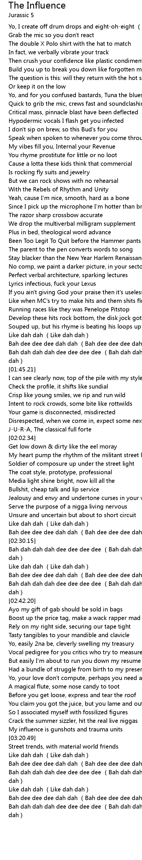 | [00:46.04] | You rhyme prostitute for little or no loot |