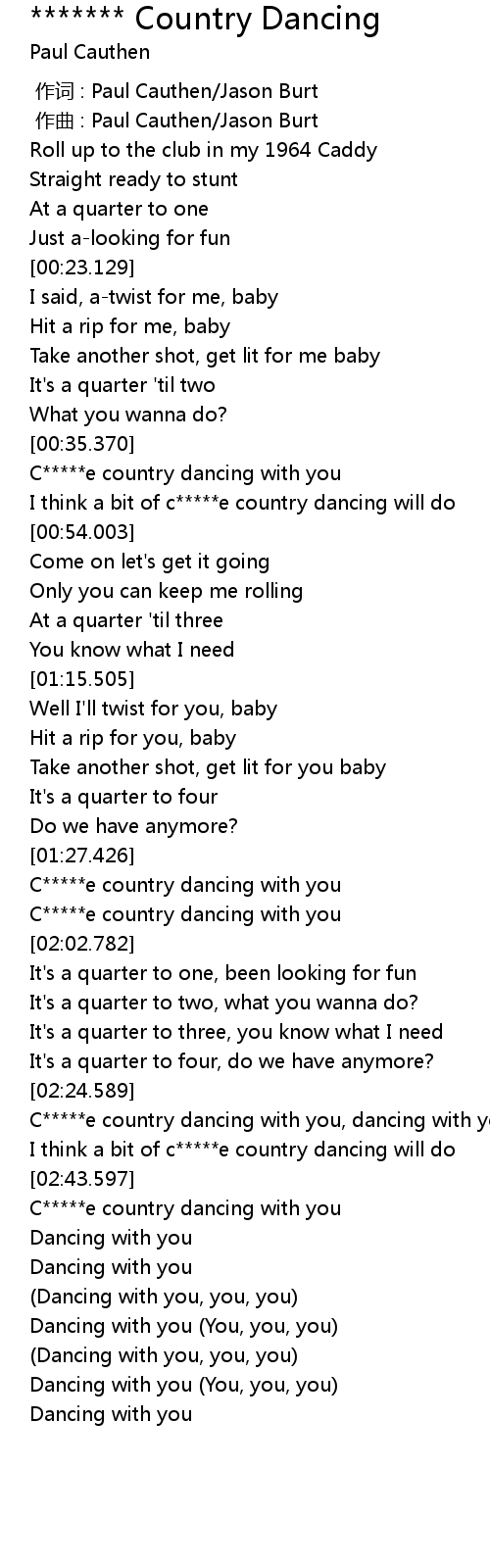 | [02:25.574] | C*****e country dancing with you, dancing with you |