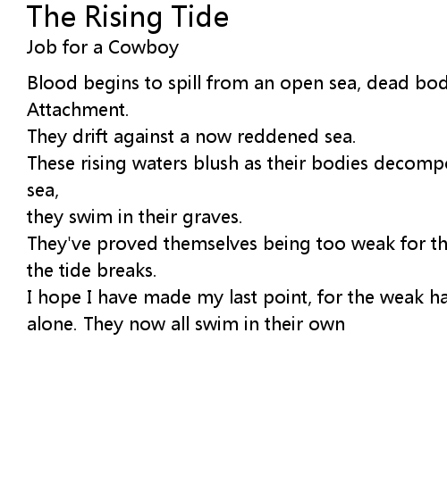 | Blood begins to spill from an open sea, dead bodies churn within the tide. Attachment. | |