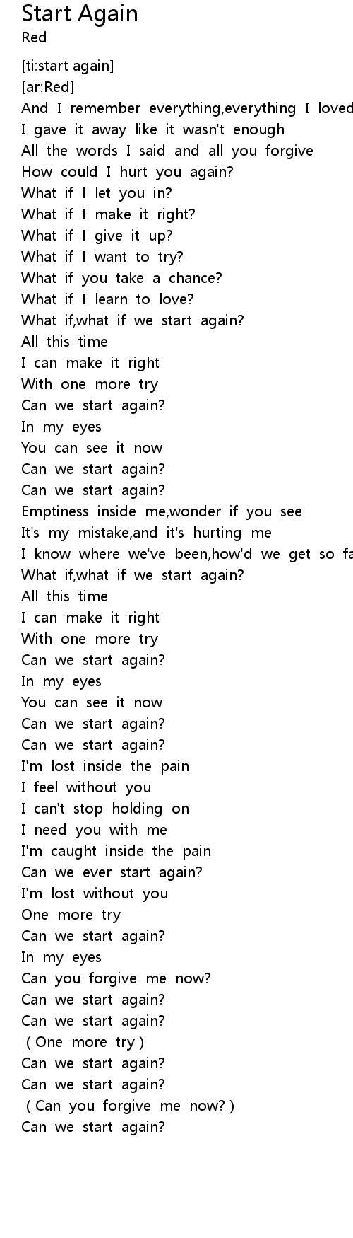 | [01:25.371] | What if, what if we start again? |