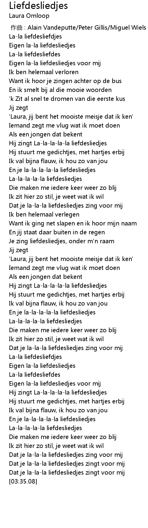 | [03:01.05] | En je la-la-la-la-la liefdesliedjes |