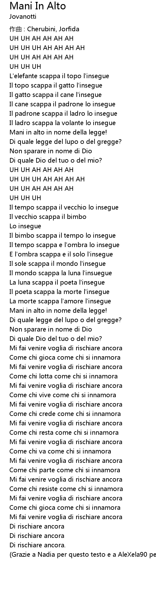 | 歌曲 | Mani In Alto |
