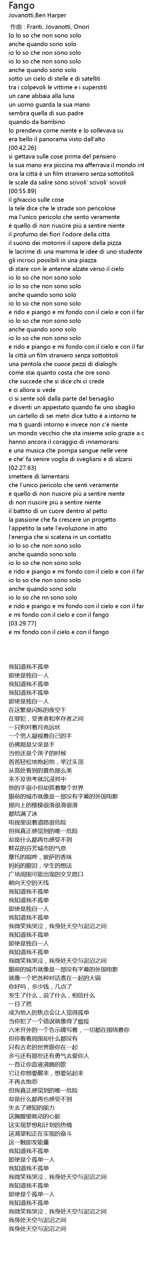 | [02:58.78] | e rido e piango e mi fondo con il cielo e con il fango |