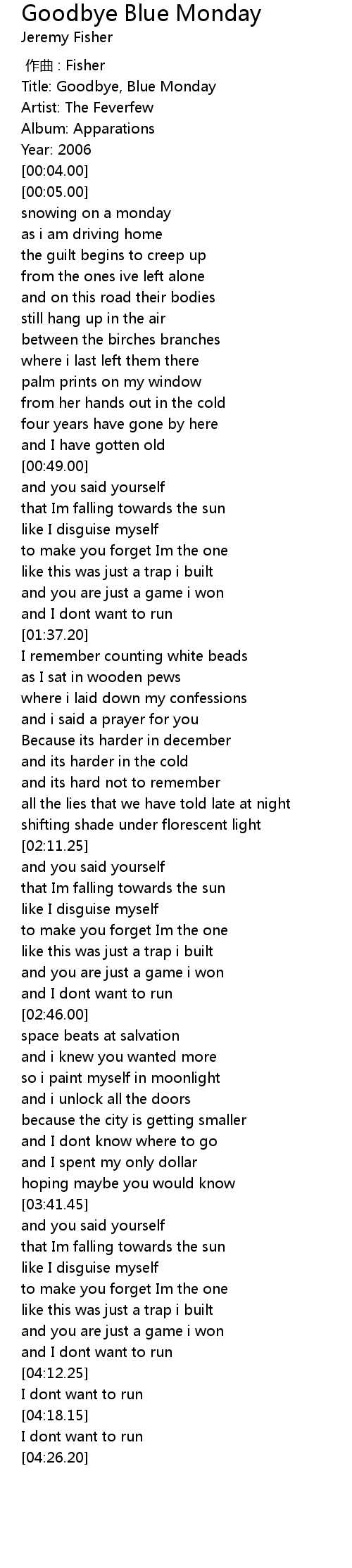 | [00:00.00] | Title: Goodbye, Blue Monday |