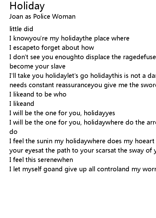 I'll take you holidaylet's go holidaythis is not a dark thought,not from one who needs constant reassuranceyou give me the sword an the powerto slay who