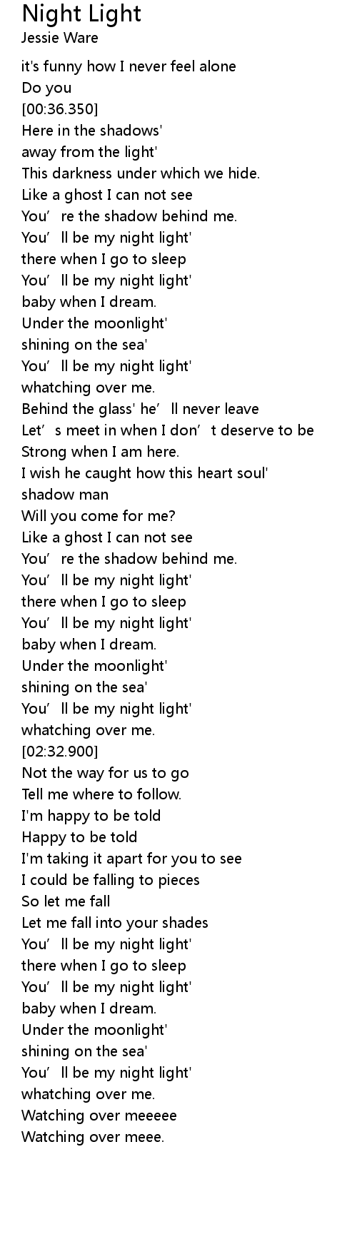 | [03:09.480] | You' ll be my night light' |
