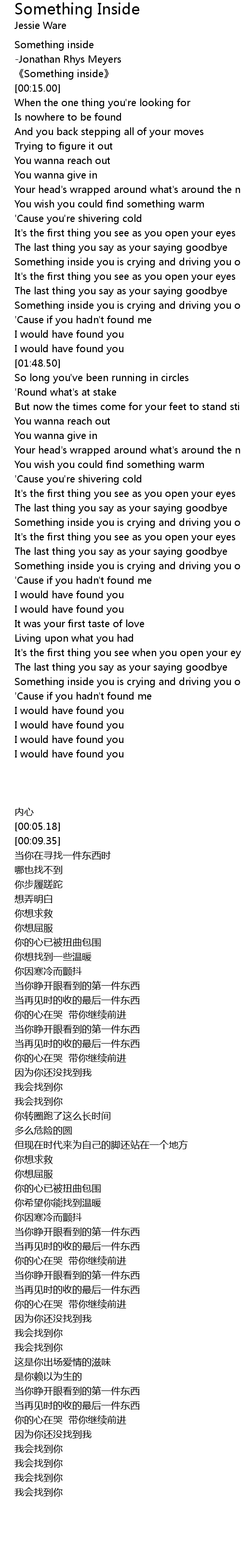 | [00:00.00] | Something inside |