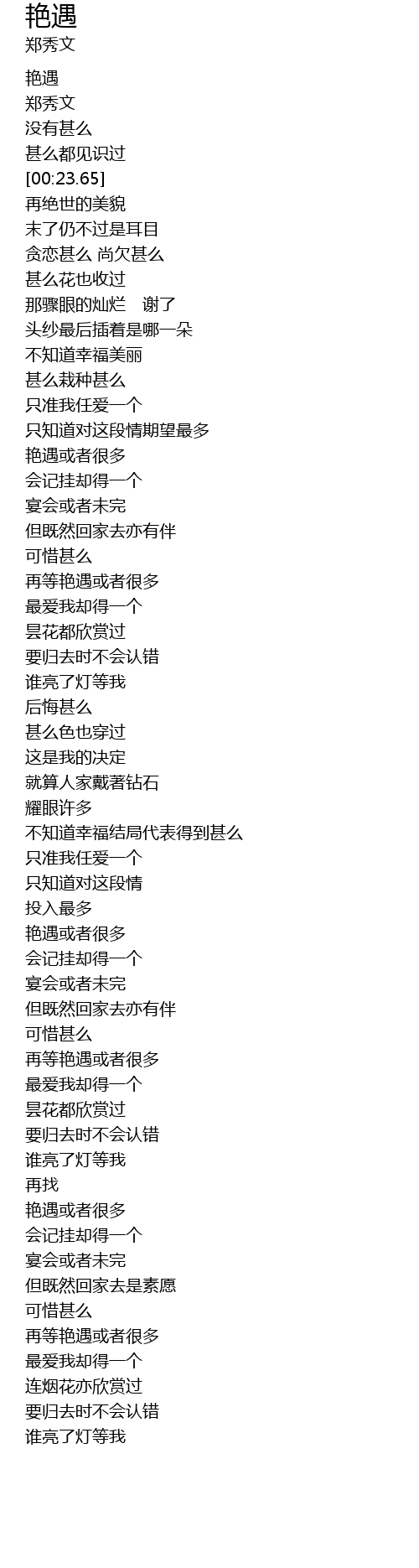 | [00:32.00] | 贪恋甚么 尚欠甚么 |