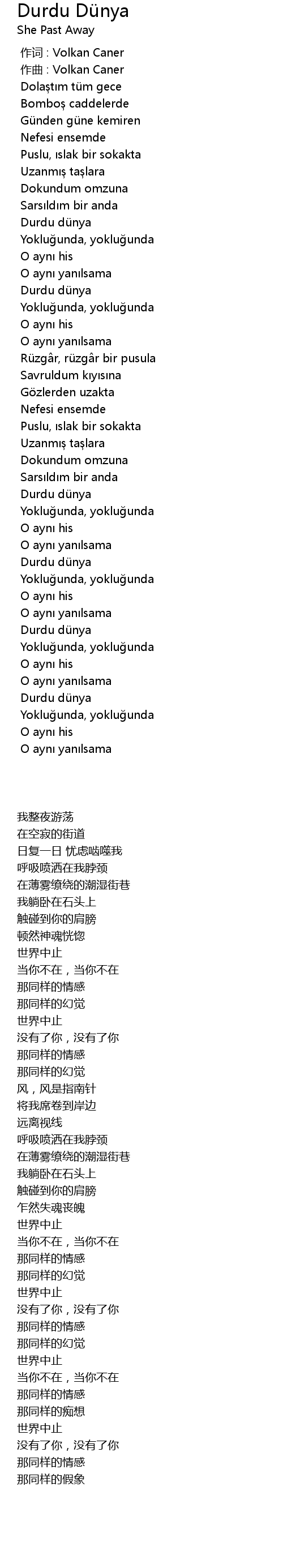 | 歌曲 | Durdu Dünya |