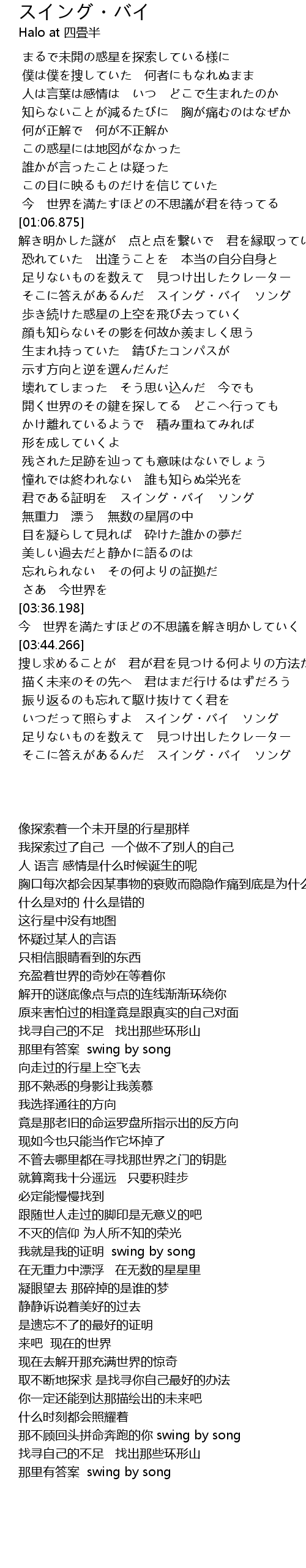 | [04:03.871] | いつだって照らすよ スイング・バイ ソング |