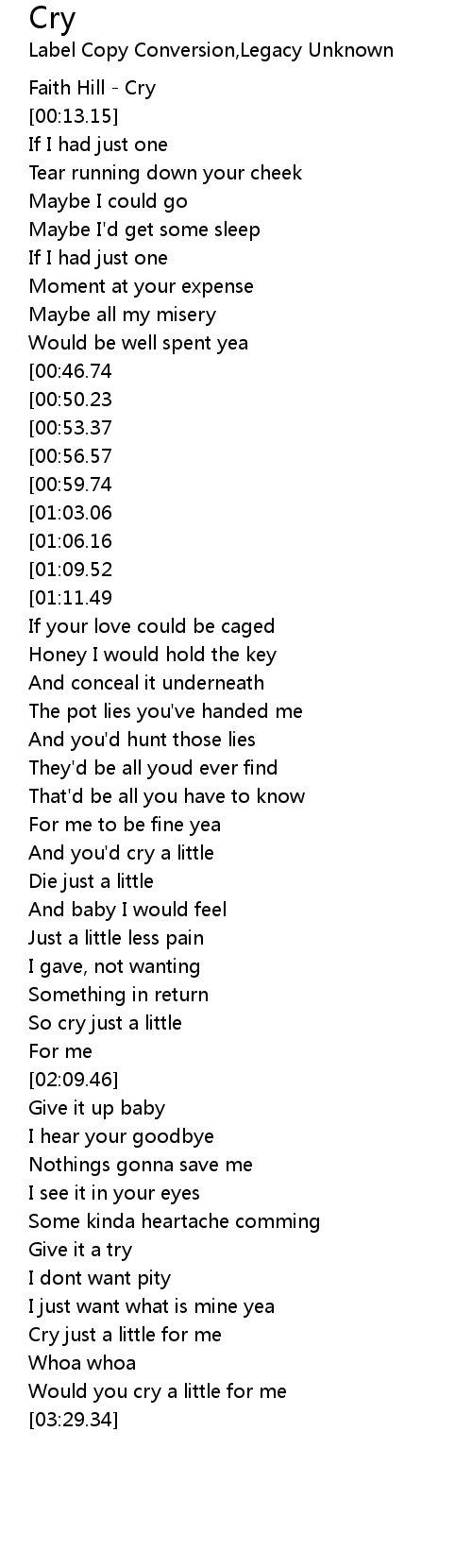 [00:00.00] Faith Hill - Cry