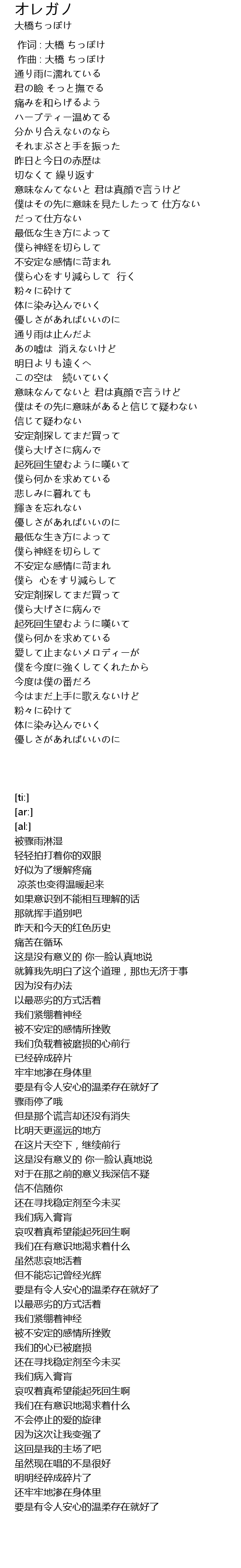 | [00:00.000] | 作词 : 大橋 ちっぽけ |