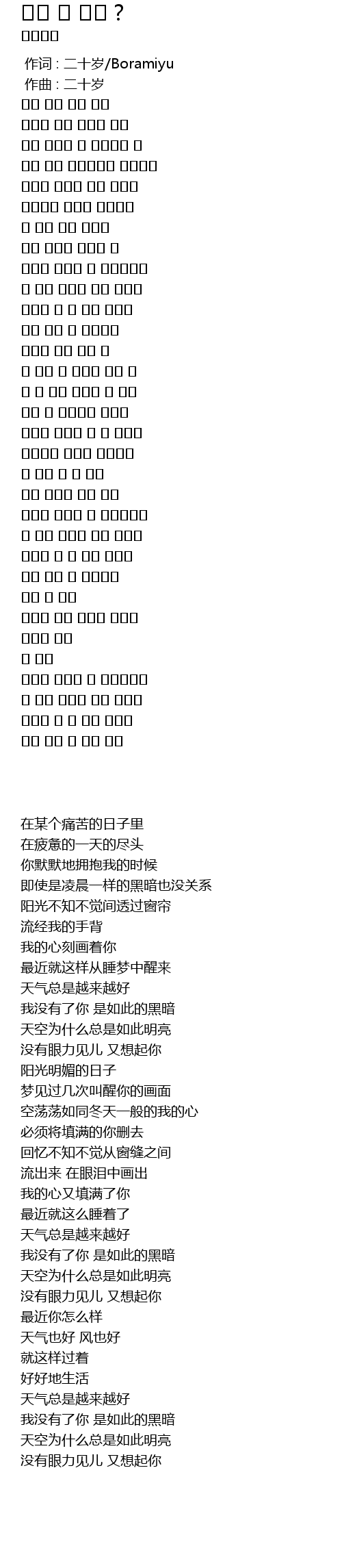 | [00:00.000] | 作词 : 二十岁/Boramiyu |