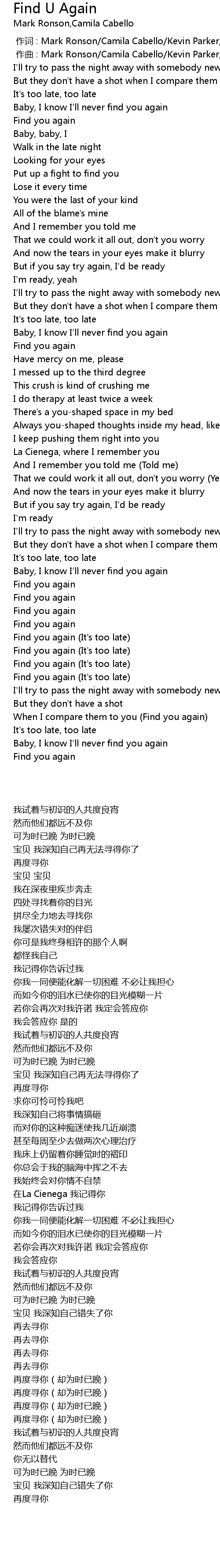 | [02:24.91] | Find you again (It's too late) |
