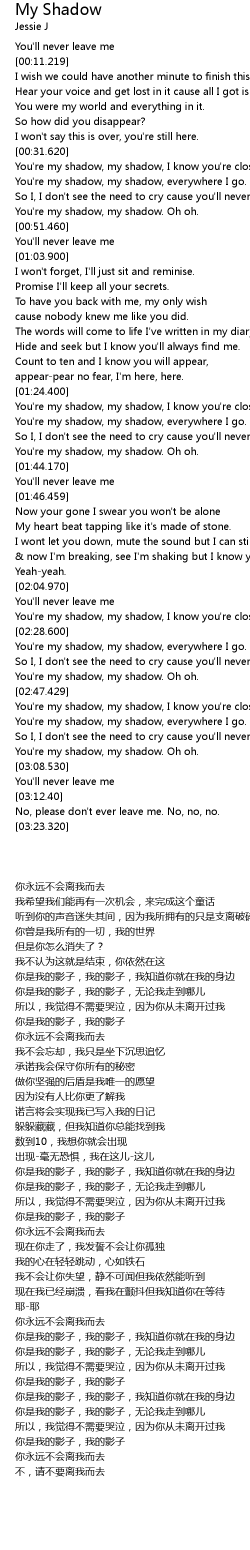 | [02:54.0] | 你是我的影子,我的影子,无论我走到哪儿 |