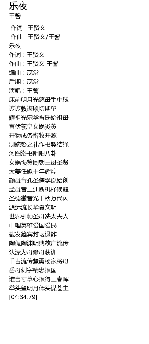| [00:01.000] | 作曲 : 王贤文/王馨 |