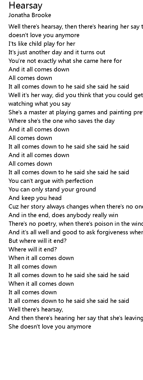 Well there's hearsay, then there's hearing her say that she's leaving, she doesn't love you anymore |