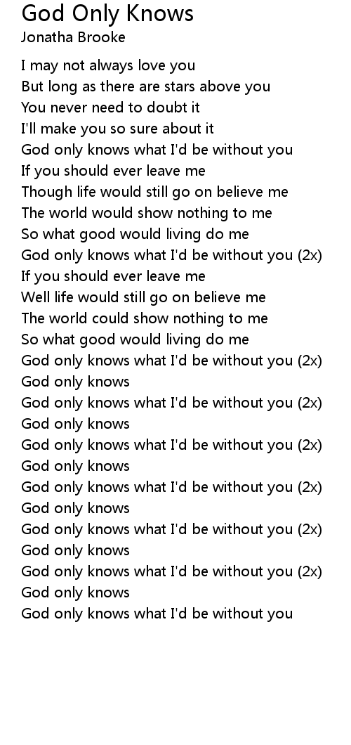 God only knows what I'd be without you |