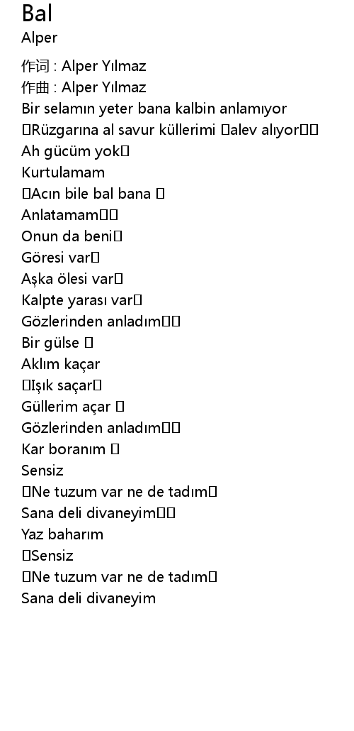 | 作词 : Alper Yılmaz | |
