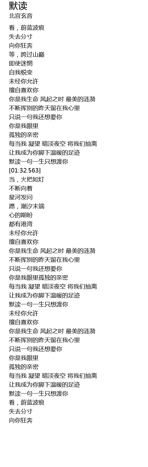 | [01:27.273] | mò dú yī jù yī shēng zhǐ xiǎng dù nǐ |