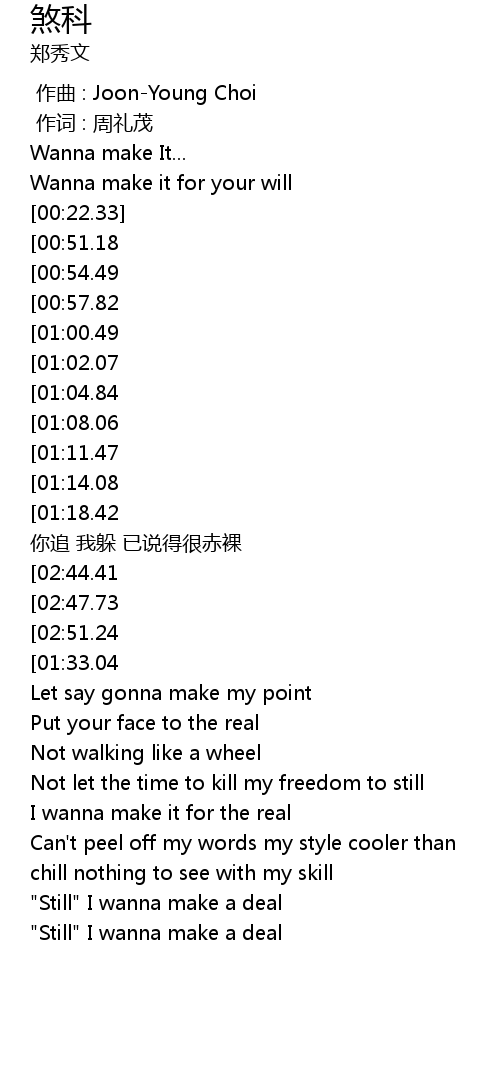 | [02:12.43] | "Still" I wanna make a deal |
