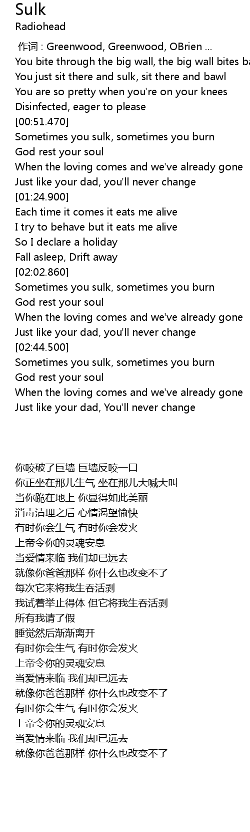 | [00:55.190] | Sometimes you sulk, sometimes you burn |