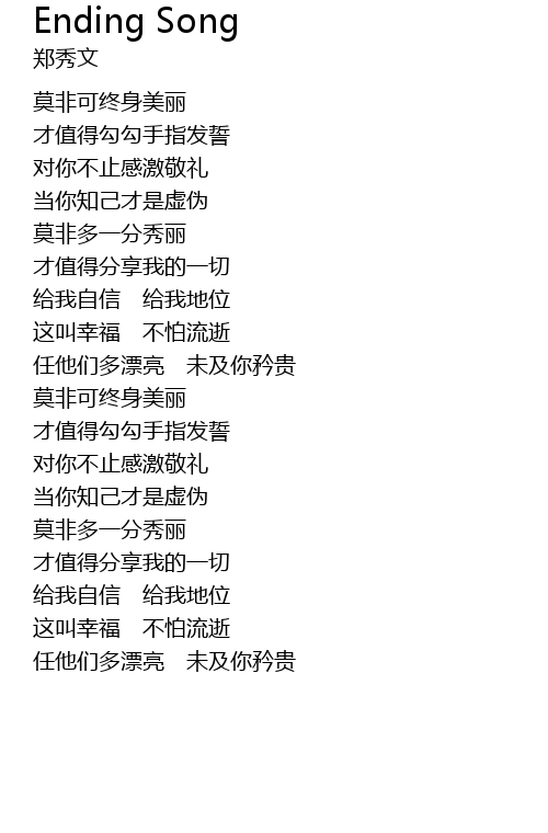 | [01:06.76] | 任他们多漂亮 未及你矜贵 |