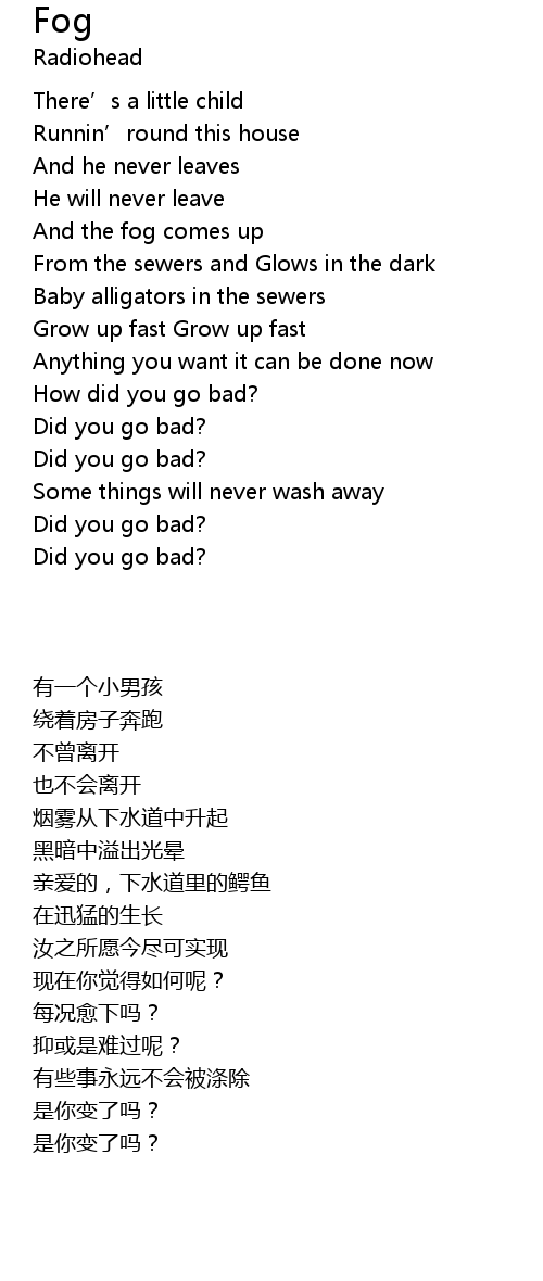 | [02:05.14] | How did you go bad? |