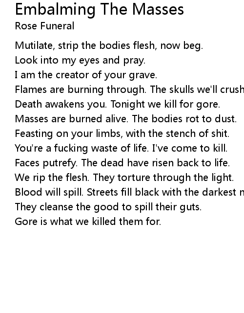 Masses are burned alive. The bodies rot to dust. |