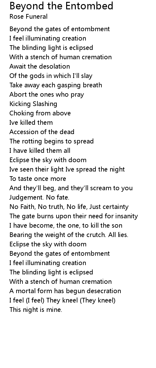 Beyond the gates of entombment |