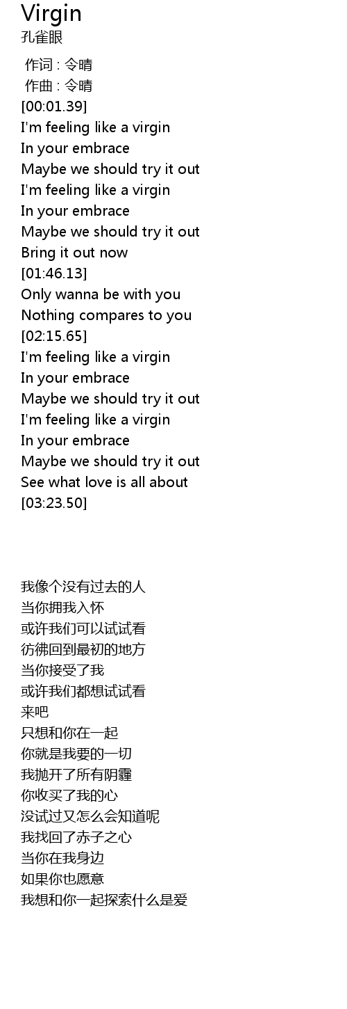 | [02:51.33] | I' m feeling like a virgin |