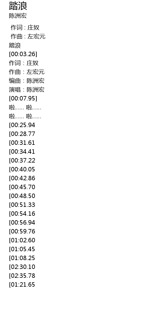 | [02:47.03][02:35.78][01:16.72] | 啦…… 啦…… |
