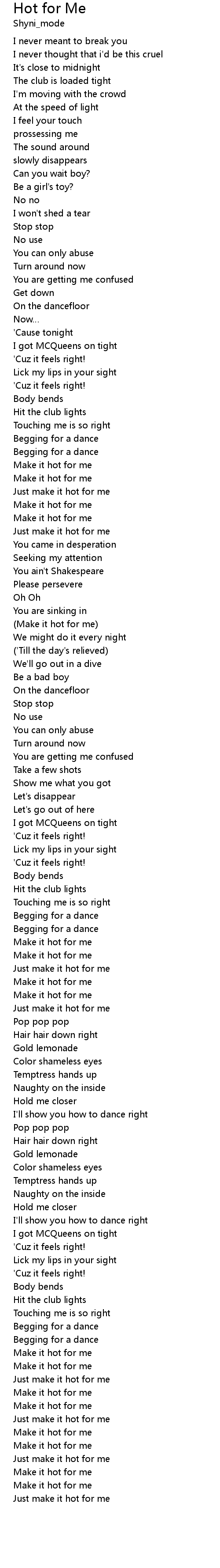 | [03:03.01] | Make it hot for me |