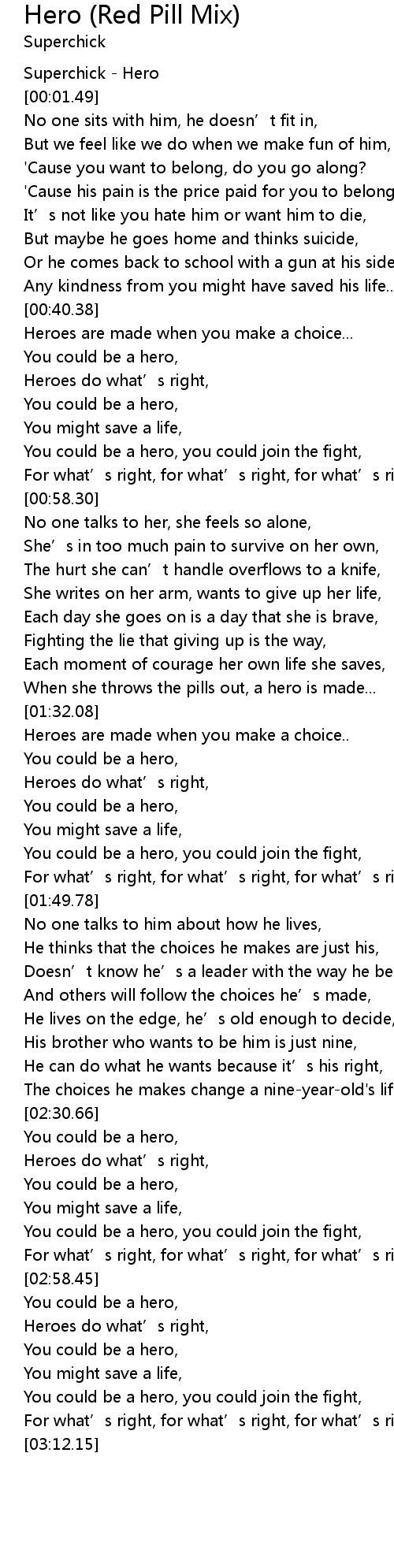 | [01:32.48] | Heroes are made when you make a choice.. |
