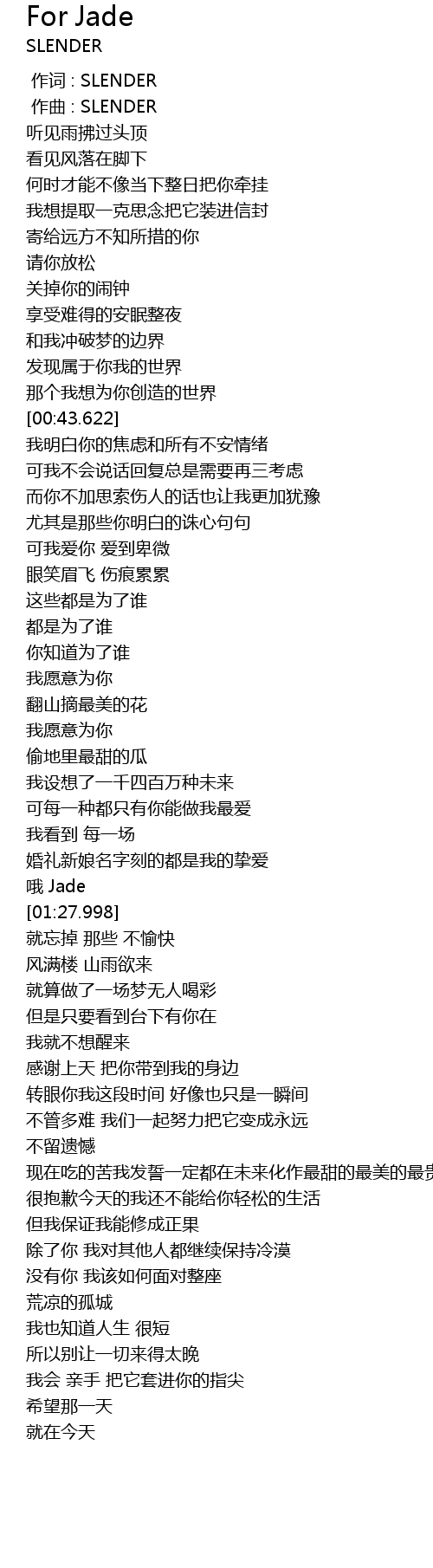| [00:00.000] | 作词 : SLENDER |