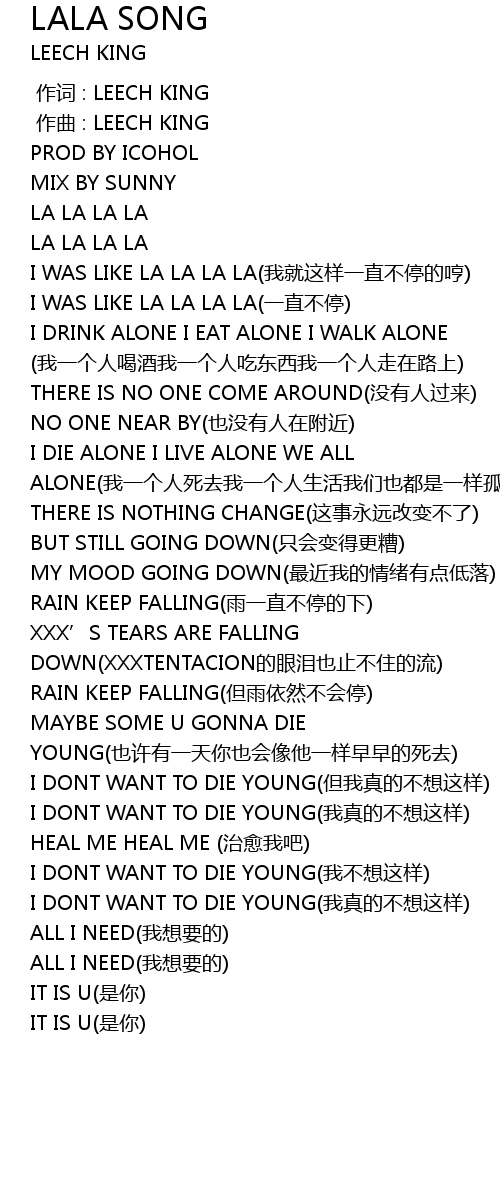 | [00:53.397] | I WAS LIKE LA LA LA LA(一直不停) |