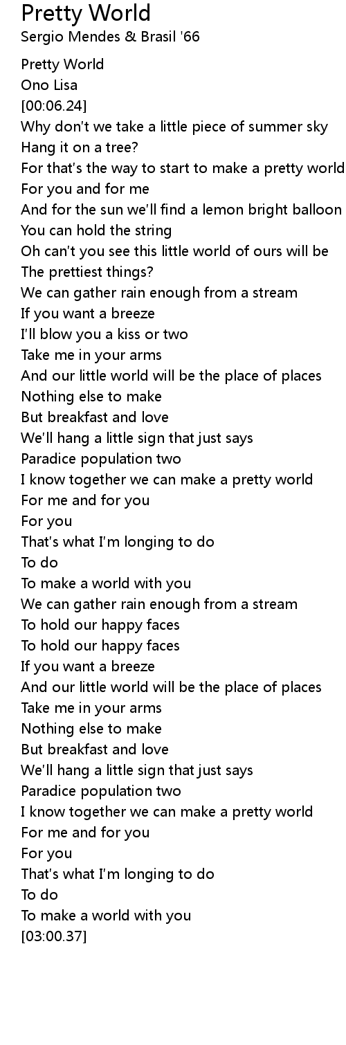 | [00:24.61] | For that s the way to start to make a pretty world |