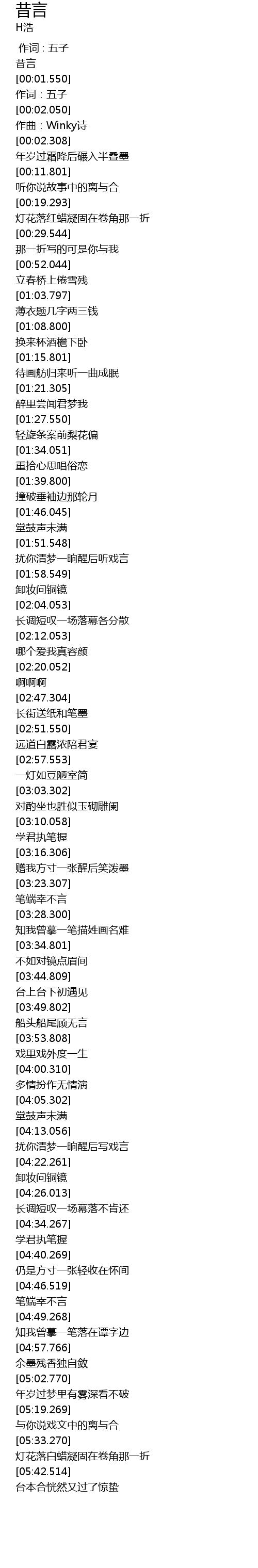 | [04:13.301] | 扰你清梦一晌醒后写戏言 |