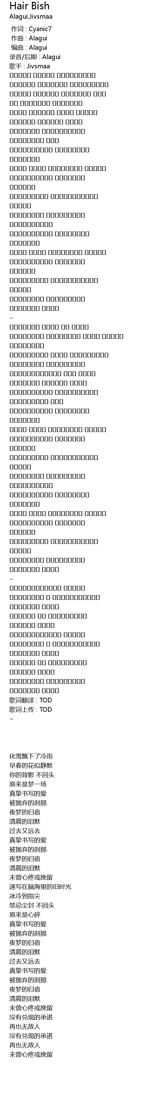 | [00:00.000] | 编曲 : Alagui |