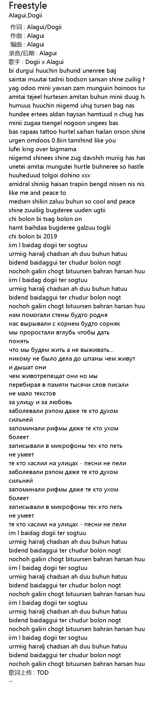 | [00:57.446] | medsen shiliin zaluu buhun so cool and peace |
