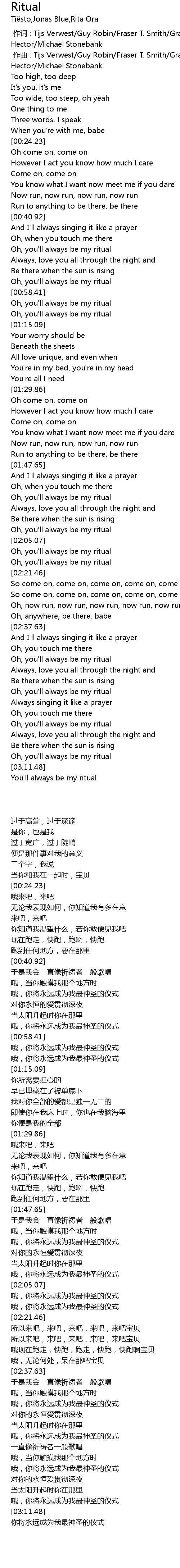 | [03:00.28] | Oh, you' ll always be my ritual |