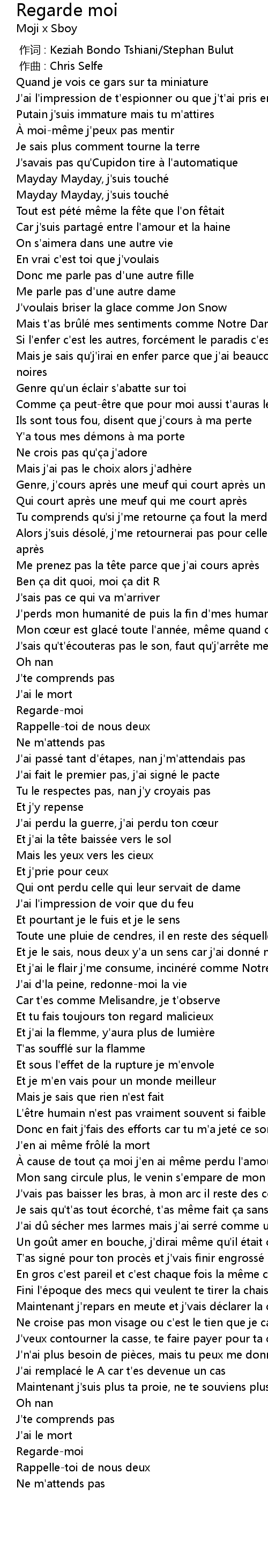 | [02:39.900] | Ne croise pas mon visage ou c'est le tien que je casse |