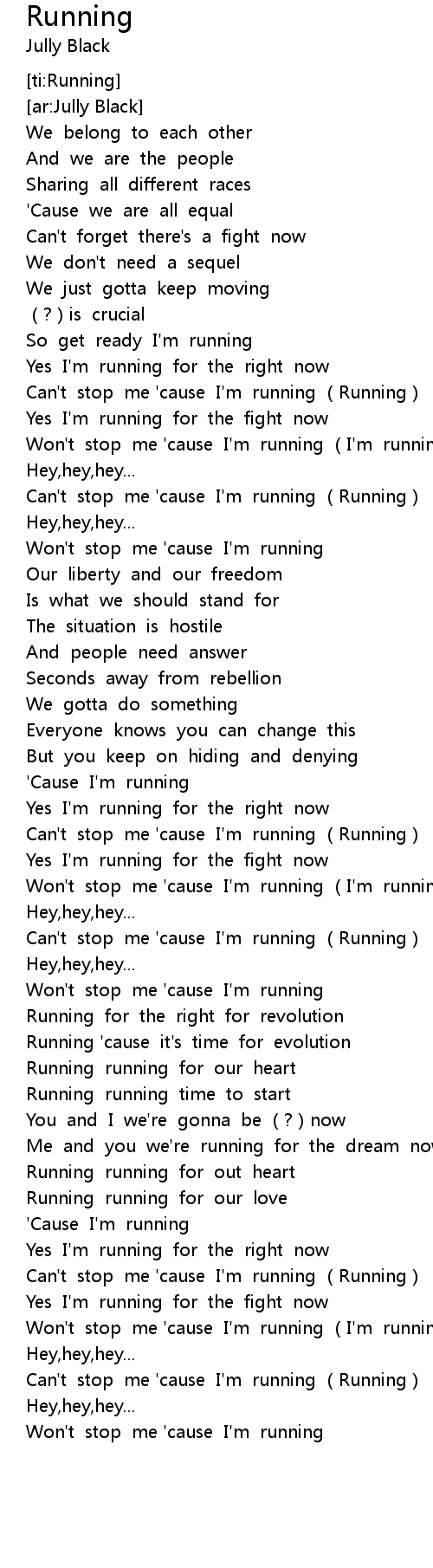| [02:52.417] | Can't stop me 'cause I'm running (Running) |