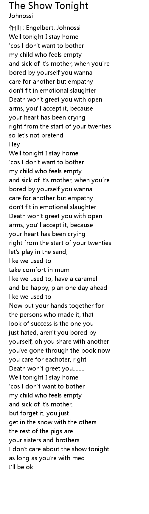 | I don' t care about the show tonight | |