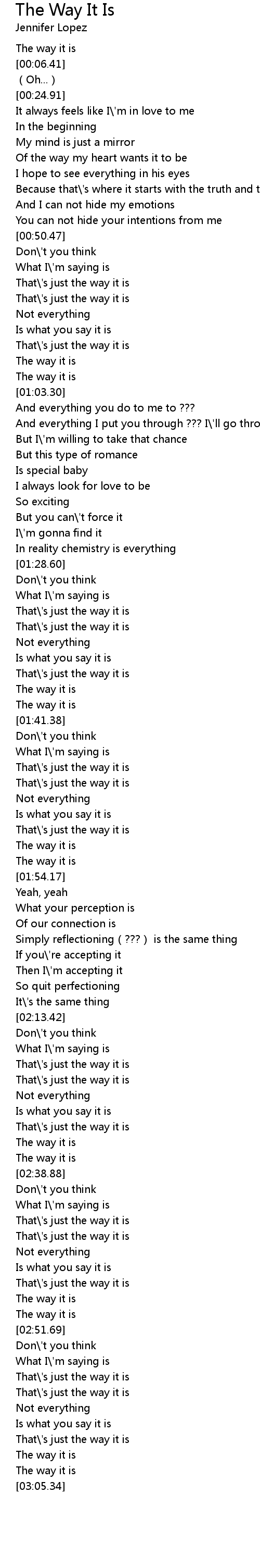 | [03:02.87] | The way it is |
