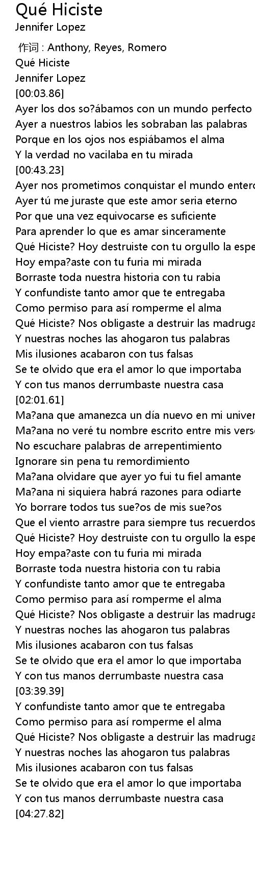 | [02:47.81] | Qué Hiciste? Hoy destruiste con tu orgullo la esperanza |