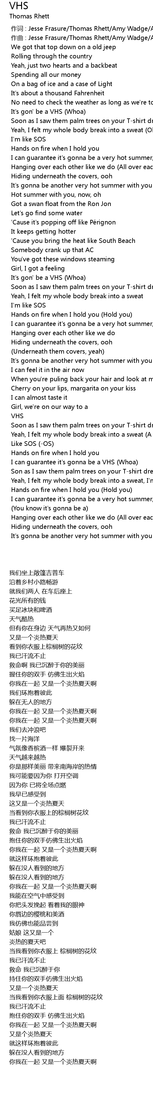 | [00:01.000] | zuò qǔ : Jesse Frasure Thomas Rhett Amy Wadge Ashley Gorley |