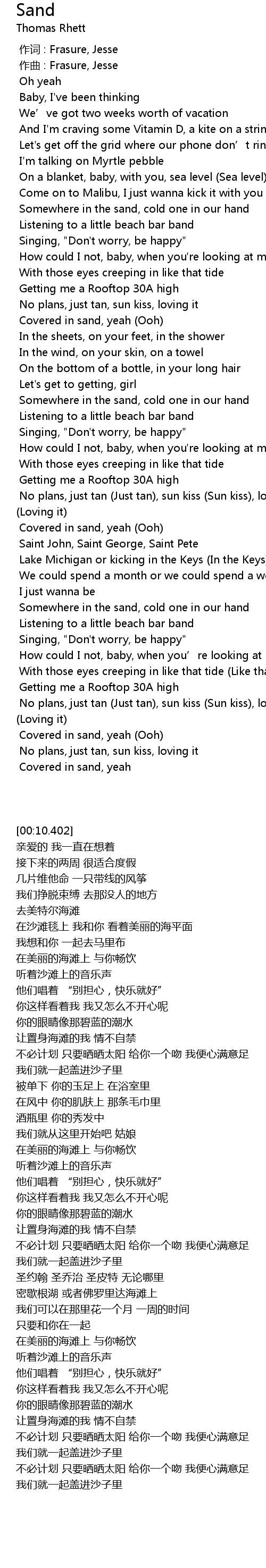 | [01:56.439] | Somewhere in the sand, cold one in our hand |