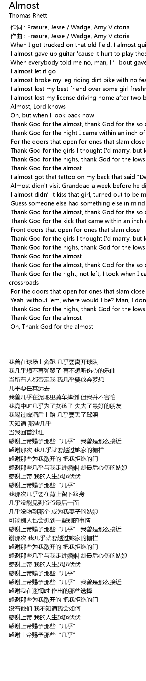 | [02:53.985] | Oh, Thank God for the almost |